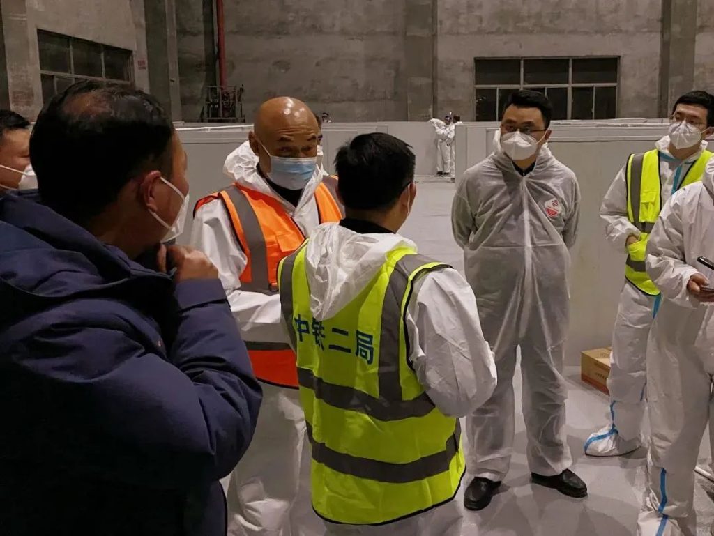 在4月1日上午,接到松江区委、区政府援建松江抗疫用房任务后,中铁二局闻令而动,主要领导亲自部署,立即成立了中铁二局松江抗疫用房临时建设指挥部,华东指挥部、上海公司、五公司、城通公司、建筑公司、深圳公司、沪苏湖经理部火速集结,积极做好防疫物资、作业人员、建设材料、施工器械等的筹集、准备,以便随时出发援建松江区“1号”抗疫用房、承揽松江区“2号”抗疫用房建设任务。