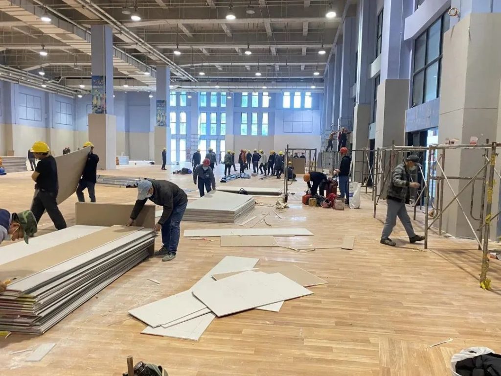该方舱医院由大宁集团承担改造任务,期间为确保该项目能在最短时间内建成投入使用,集团党委书记、董事长史方亲自挂帅,及时组织召开工作部署会议,迅速组建建设队伍。在3月29日13时便拿出初步方案,3月29日14时,集结400余名建设管理人员及施工建设人员,迅速入场,开展施工。集团子公司上海大宁建设投资管理有限公司建设管理团队充分发扬能吃苦、能战斗、能拼搏的精神,24小时不停歇,确保人力、物力的调度落实,为保障顺利施工一刻不松懈。