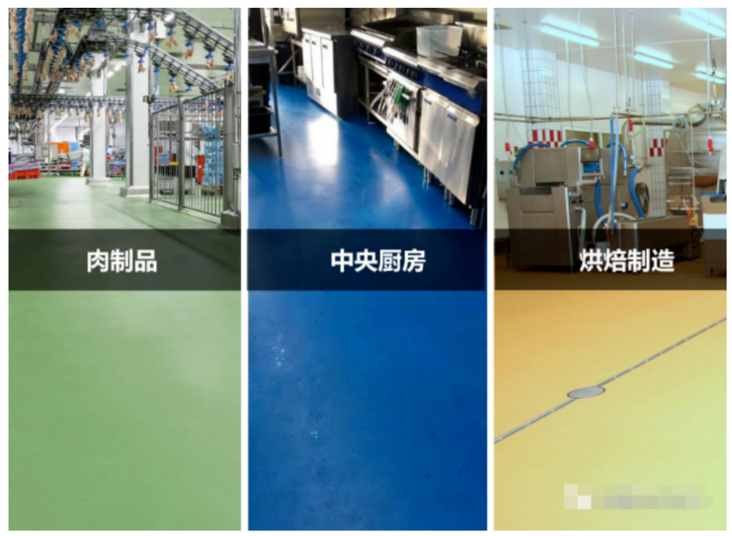 水性聚氨酯砂浆地坪系统是由高性能水性聚氨酯树脂、高强度无机材料、高性能级配硅砂以及活性颜料组成的彩色地坪涂装系统,该地坪系统具有无毒无味、不含重金属、耐磨、耐冲击、防滑等综合技术性能优异,在-40℃至120℃高低温环境下长期使用不变色不脱落,而且能在潮湿环境以及化学物品的侵钟下经久耐用,非常适用于啤酒饮料、乳制品、肉制品、中央厨房、烘焙制造等行业。
