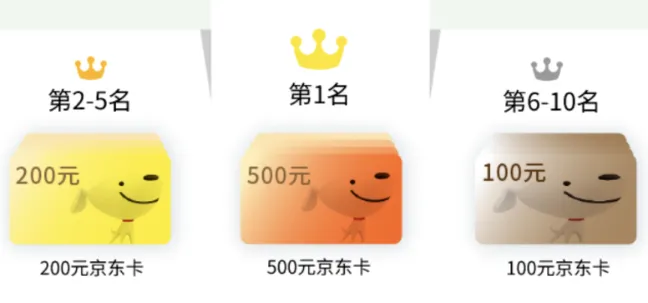 *邀请人数≥3人,根据邀请排行榜将额外再得以下京东卡奖励!