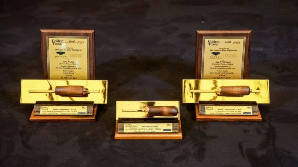 Golden Trowel ® Awards 金镘刀奖 创立于1989年,是混凝土施工领域最具权威的奖项之一。以高精度的地坪平整度检测,锚定现场施工水平的全球顶级水准,获奖项目遍布五大洲。2018年WOCA将的其正式引入国内。至今已有28个中国项目获奖,为行业树立了顶尖标杆。