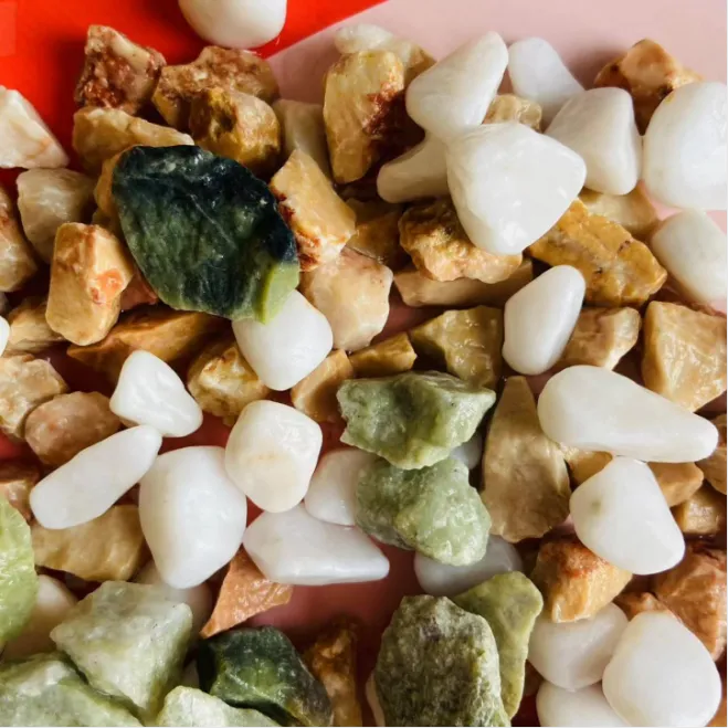 彩色碎石是采用天然花岗岩矿石破碎而成,具有纯天然色彩是现代路面工程重要固料,水洗石是采用天然彩色碎石加工而成,外表光滑不伤手,具有鹅卵石一样的形状。主要用于胶粘石、水磨石、无机磨石、景观装饰等作用。